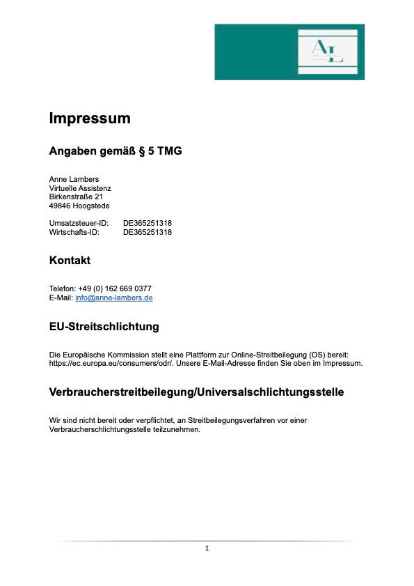 Umsatzsteuer-Identifikationsnummer gemäß § 27a Umsatzsteuergesetz: DE365251318Verantwortlich für den Inhalt nach § 55 Abs. 2 RStV